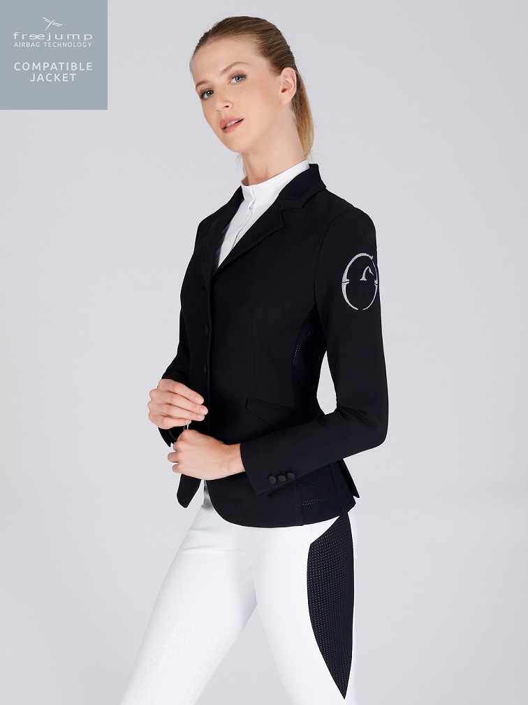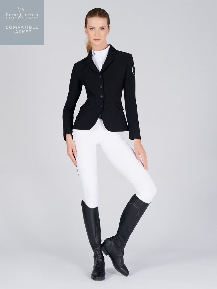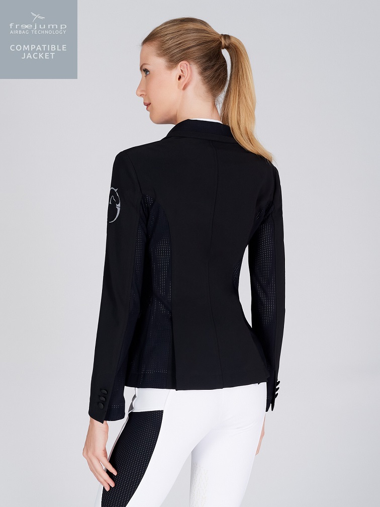 Äntligen en kavaj som är kompatibel med Freejumps airbagväst! Nu kan du ha säkerhetsvästen under din kavaj utan att den riskerar att gå sönder. Nya Barcellona tävlingskavaj från italienska Vestrum är gjord för att säkert och tryggt kunna bäras över airbagvästar. Den klarar expantionen av den utlösta västen utan problem och återgår till sin orginalform så fort västen tömt på luft.