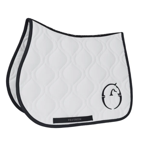 Elegant och klassiskt schabrak från Italienska Vestrum. Italiensk kvalité och med en lyxig känsla av materialval och design. Hoppschabraket är tillverkat i ett fast-dry material som andas, håller hästen sval och torkar fort. Superbra passform som ligger bra på hästen. Broderad Vestrum logga på vänster sida.